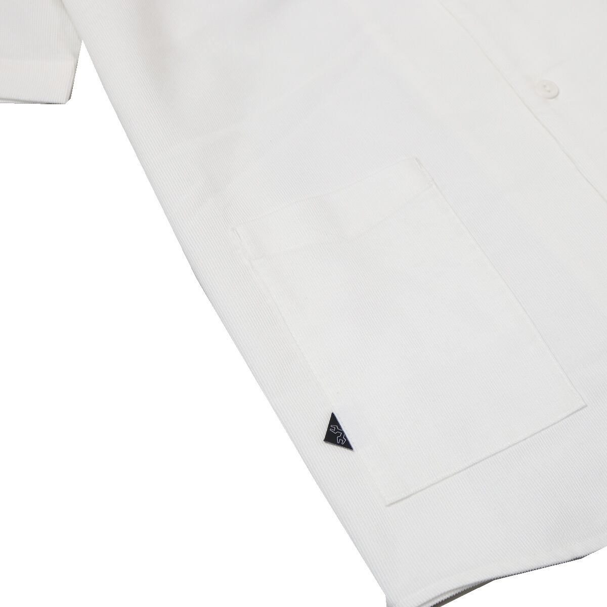 胸元のロゴ刺繍がシンプルながら上品なアクセントにシャツとしてカジュアルにもバイクスタイルにもおすすめの一枚です